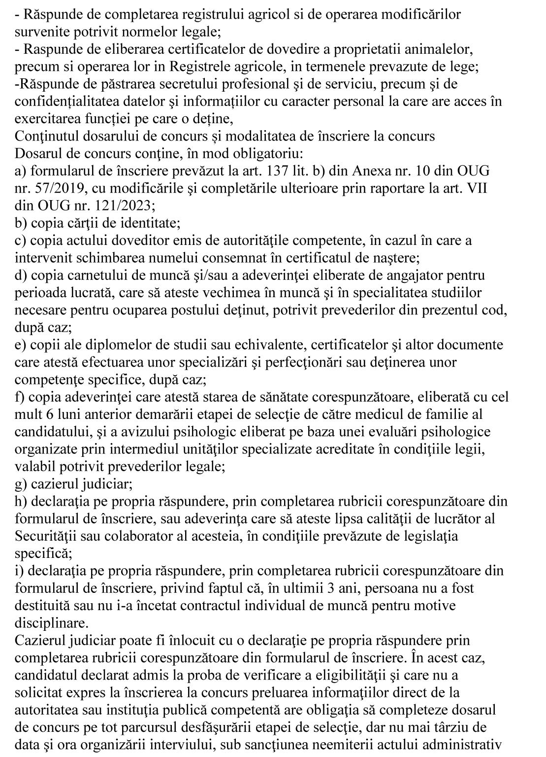 Condiții pentru ocuparea postului