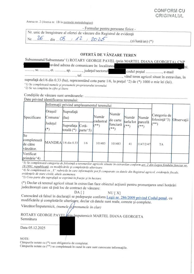 Actele administrative-fiscale pot fi consultate de titularii acestora la sediul organului fiscal emitent. Prezentele acte administrative fiscale se consideră comunicate în termen de 15 zile de la data afișării anunțului, respectiv 16.12.2025. Dacă aveți nelămuriri în legătură cu acest anunț, puteți lua legatura cu Impozite la sediul nostru sau la nr. de telefon.