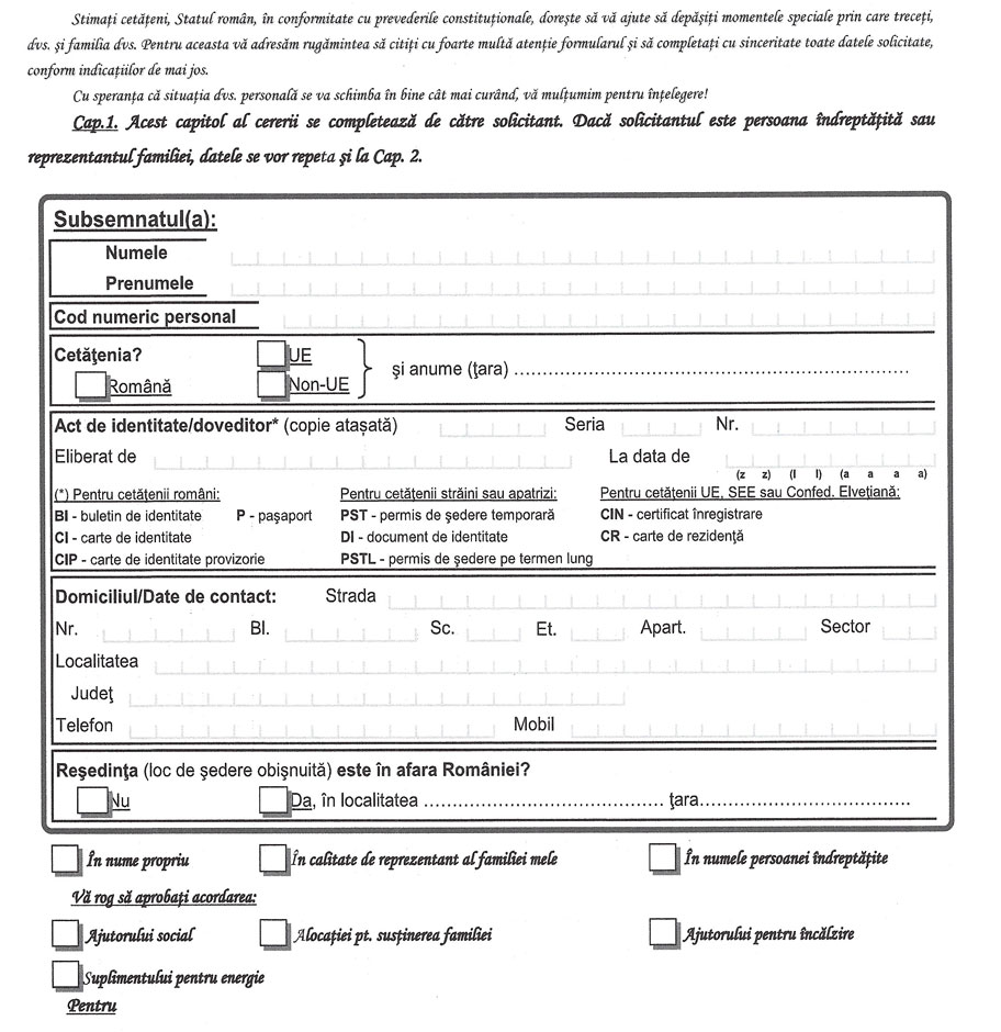 Stimați cetățeni, Statul Român, în conformitate cu prevederile constituționale, dorește să vă ajute să depășiți momentele speciale prin care treceți, dvs. și familia dvs.