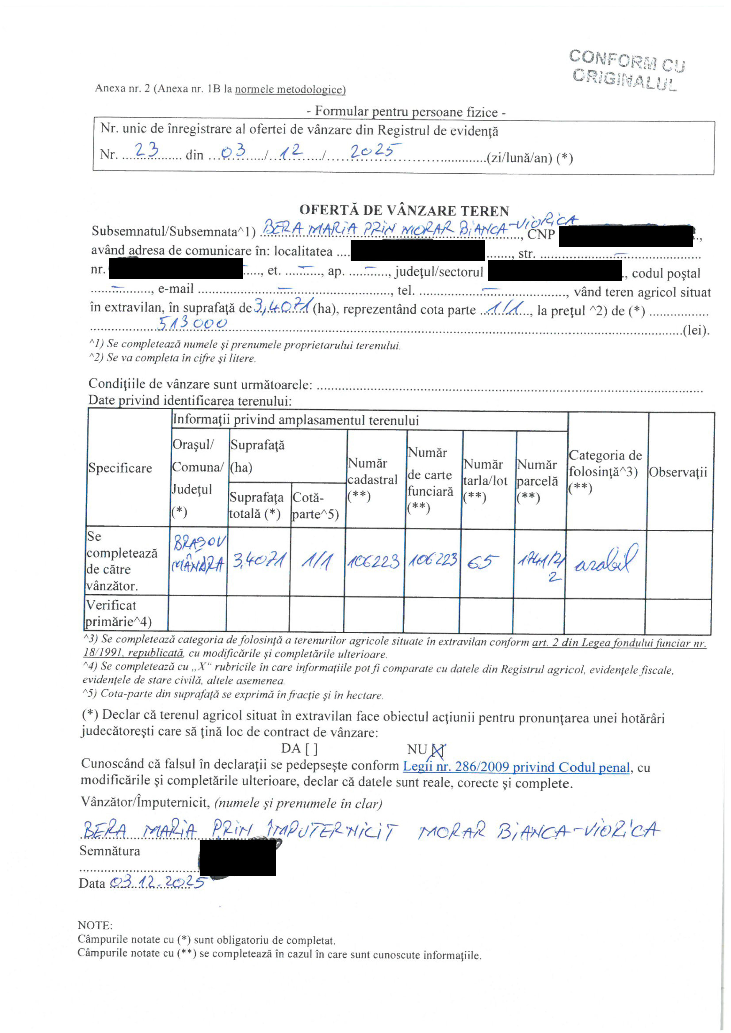 Ofertă de vânzare teren. Primăria comunei Mândra propune spre vanzare un teren situat pe raza comunei, categorii de folosință: arabil. Terenul este situat în localitatea Mândra, Județul Brașov.